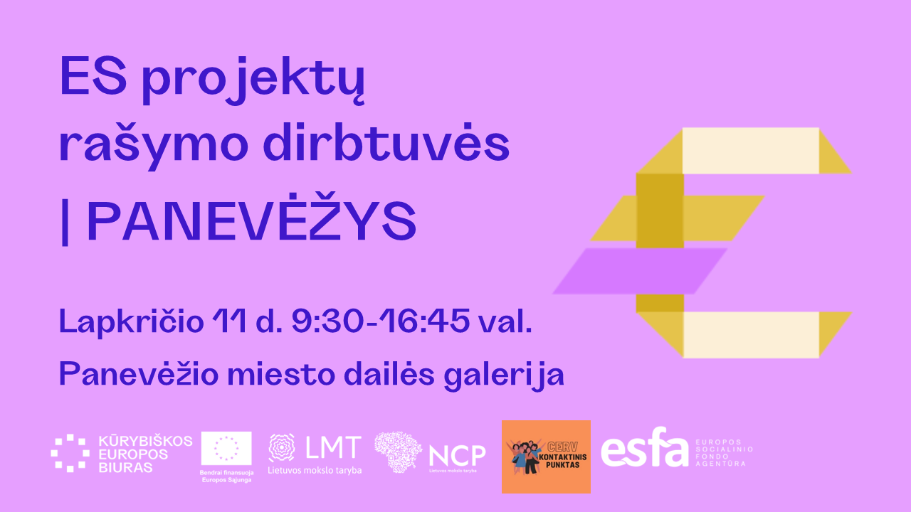 Europos Sąjungos (ES) programos „Kūrybiška Europa“ biuras Lietuvoje, „Europos Horizonto“ ir ES Piliečių, lygybės, teisių ir vertybių (CERV) programų kontaktiniai punktai Lietuvoje kviečia dalyvauti vienos dienos ES projektų rašymo dirbtuvėse lapkričio 11 d. 09:30-16:45 val. Panevėžio miesto dailės galerijoje (Respublikos g. 3, Panevėžys).